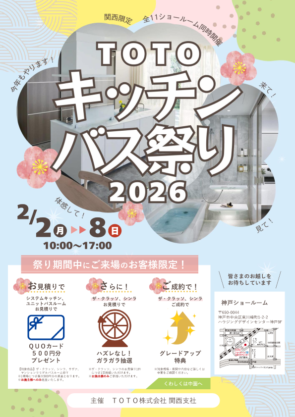 TOTO神戸ショールームにてキッチンバス祭り2026が開催されます。